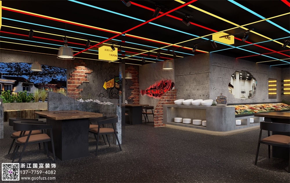 工業(yè)風(fēng)燒烤店裝修設(shè)計(jì)案例效果圖