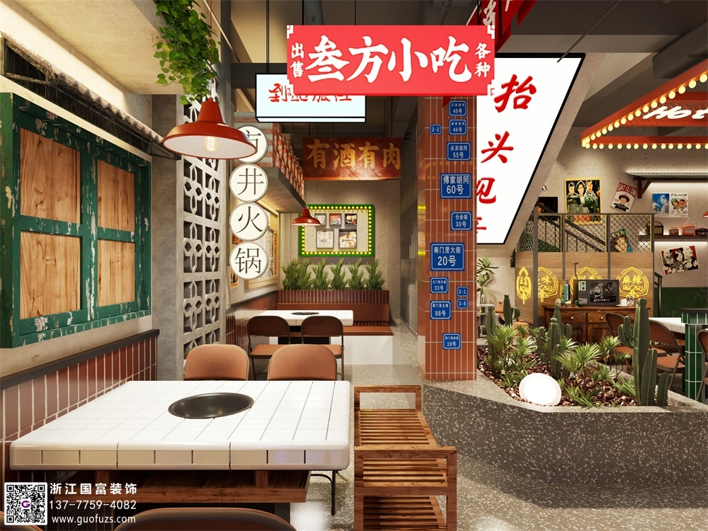 市井老火鍋店裝修設(shè)計案例效果圖