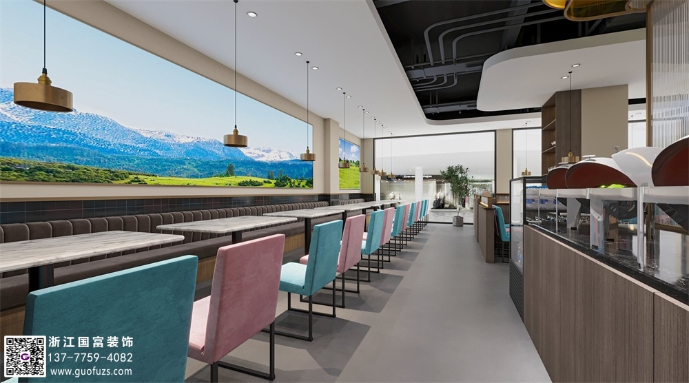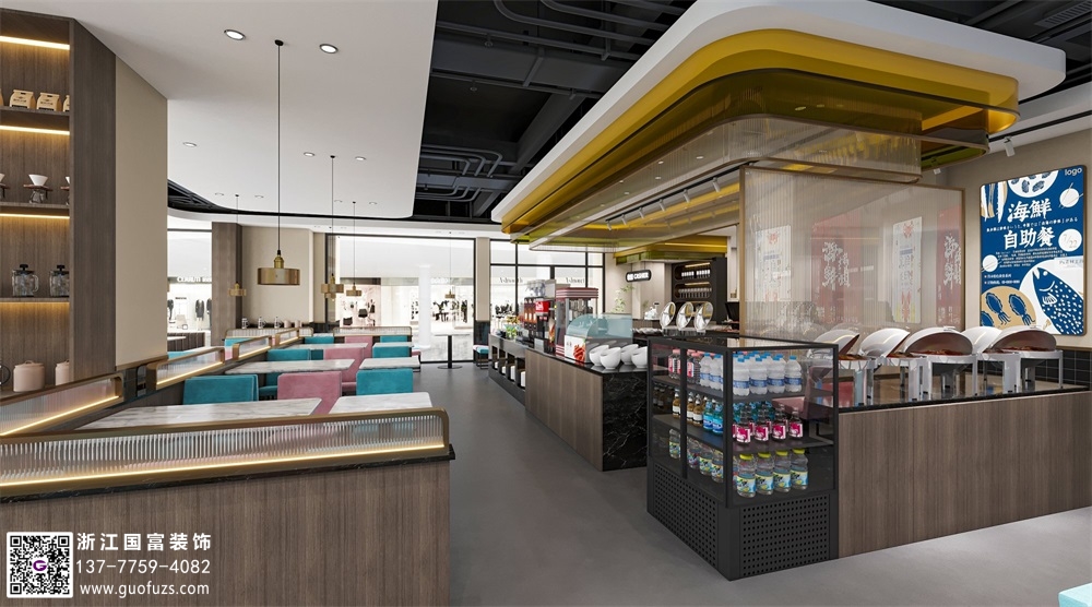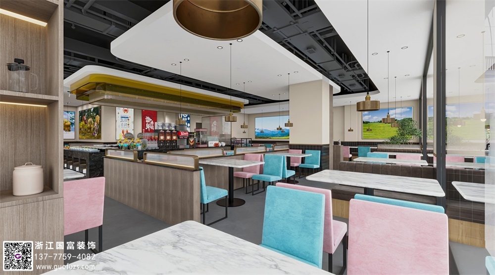 清新簡約風(fēng)自助餐廳裝修效果圖